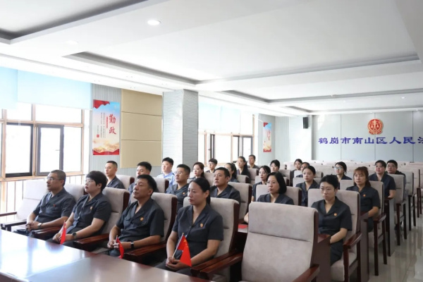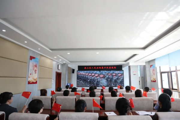 9月3日,纪念中国人民抗日战争暨世界反法西斯战争胜利80周年大会在北京天安门广场隆重举行。为厚植爱国主义情怀,激发干警使命担当,南山区人民法院组织全体干警集中收看,共同见证这一伟大而神圣的时刻。上午9时许,纪念大会正式开始。干警们整齐地坐在会议室,聆听中共中央总书记、国家主席、中央军委主席习近平发表的重要讲话。阅兵式开始,干警们聚精会神地注视着大屏幕,受阅队伍步伐整齐、军姿昂扬,那钢铁洪流的磅礴气势、铿锵步伐的震撼力量,不仅定格成共和国的壮丽记忆,更如一束火炬,点燃了每一位干警心中的爱国赤诚。