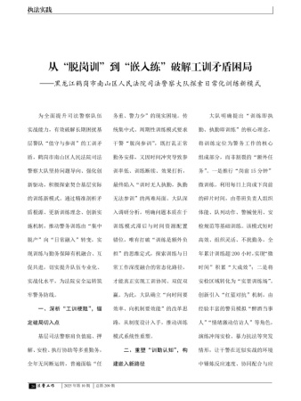 近期,我院司法警察大队撰写的《从“脱岗训”到“嵌入练”破解工训矛盾困局——南山区人民法院司法警察大队探索日常化训练新模式》一文,被最高人民法院《法警工作》采编刊发!这是对我院司法警察队伍实战化建设成果的高度肯定,也是对我院警务保障工作创新实践的权威认可!