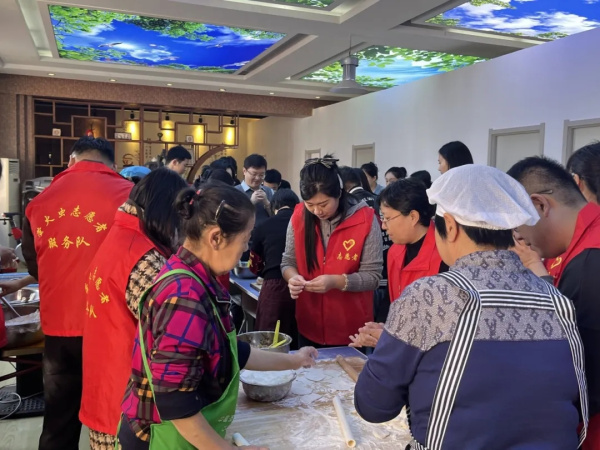 活动现场暖意融融,党员志愿者们分工明确、默契配合。和面、调馅、擀皮、包捏,大家围在桌前热火朝天地忙活起来。欢声笑语中,一个个形态各异的饺子陆续成型,很快摆满了餐盘。“孩子们来陪我们热闹,这饺子吃着肯定香!”一位老人看着忙碌的志愿者,脸上满是欣慰的笑容。
